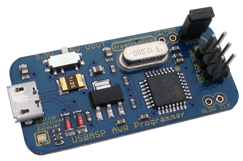 Arduino — это процессор AVR со специальным кодом, который позволяет использовать среду Arduino для простого программирования и загрузки кода. Все, что вам нужно, это USB-кабель для программирования и связи с ним. Это выглядит примерно так: