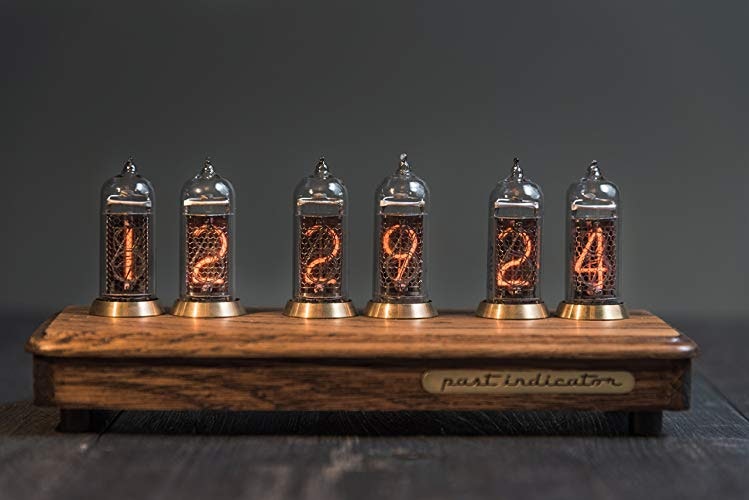 Настольные цифровые ретрочасы Nixie Clock с RGB-подсветкой, 4 режимами работы и каркасом из древесины темного ореха