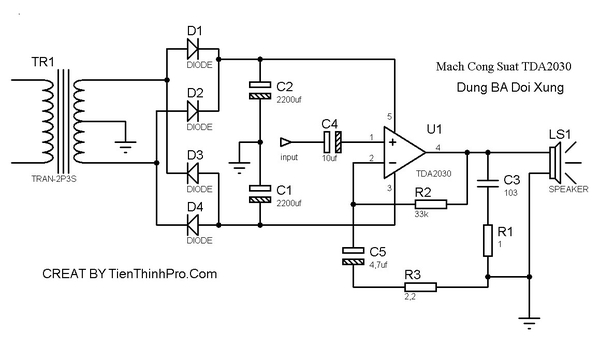 Микросхема усилитель TDA2030 является достаточно. Типовая схема включения TDA2030 с выходной мощностью до 14 ватт. типовая.