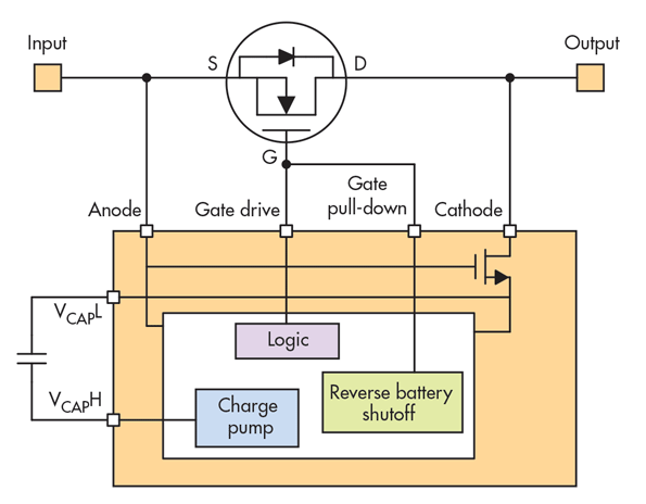 При Ron равном 0,85 Ом для истока pМОП-транзистора и 0,35 Ом для стока nМОП-транзистора драйвер можно рассматривать почти как идеальный переключатель, позволяющий ему работать с меньшим охлаждением из-за меньшего рассеивания мощности в ИС.