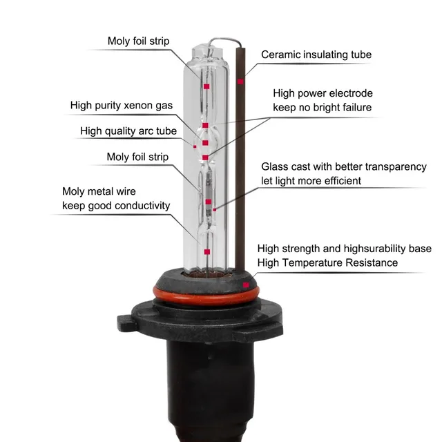 Ксеноновая лампа, также известная как газоразрядная лампа высокой интенсивности, на английском языке называется HID. Автомобильная продукция ксеноновых ламп состоит из ксеноновых ламп, изоляционного провода и балласта. Его принцип работы заключается в том, что при подключении к источнику питания через трансформатор в одно мгновение источник питания 12 В будет увеличен до более чем 23 000 вольт высоковольтного импульсного напряжения, активация ксеноновой лампы ксеноновой дуги, генерируемой в цветовой температуре 3000K — 12000K сильного света цвета были белыми, слегка кристаллическими в Blu-Ray.