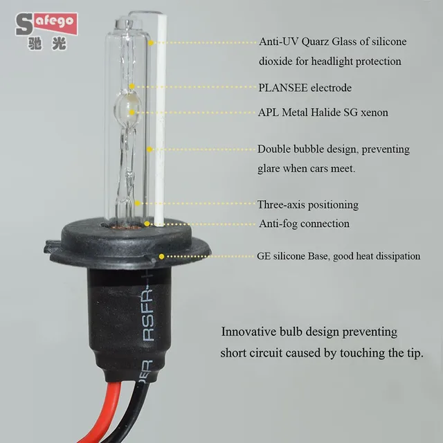 Колба ксеноновой газоразрядной лампы фары, балласт газоразрядной лампы и элементы управления ходом исполнительного механизма излучения лампы. Это зазор между фонарными столбами до 4мм, рабочее напряжение до 28кВ, поэтому категорически не допускаются к работе в своем состоянии демонтажные работы. Ксеноновая газоразрядная лампа может загореться через три секунды после максимальной яркости, которая определяется ее не может быть дальним светом, можно использовать только ближний свет.