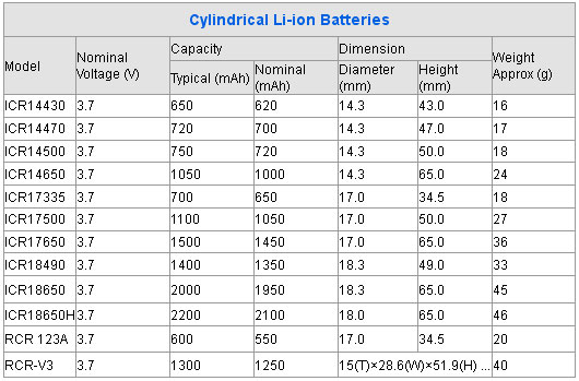 стандартные размеры литий-ионных батарей не всегда стандартные
