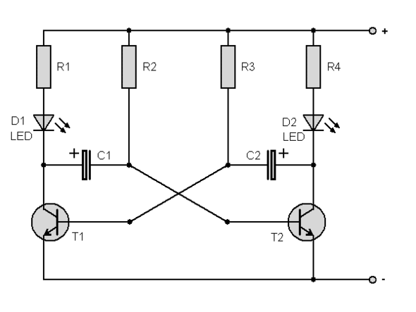 - Мигалки на светодиодах и транзисторных мультивибраторах (6 схем)