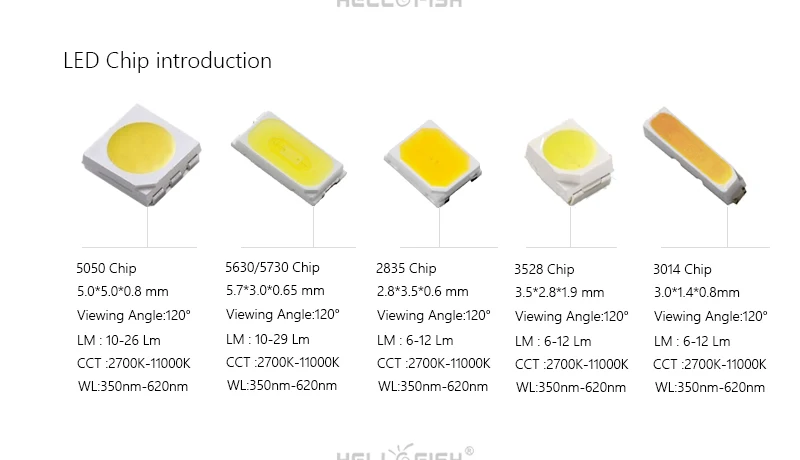 Светодиодные чипы SMD доступны в различных размерах. Например, один из чипов SMD, SMD LED 5050, имеет ширину 5 мм, а SMD 3528 имеет ширину 3,5 мм. Как видите, микросхемы SMD компактны, практически идентичны архитектуре плоских квадратных компьютерных микросхем.