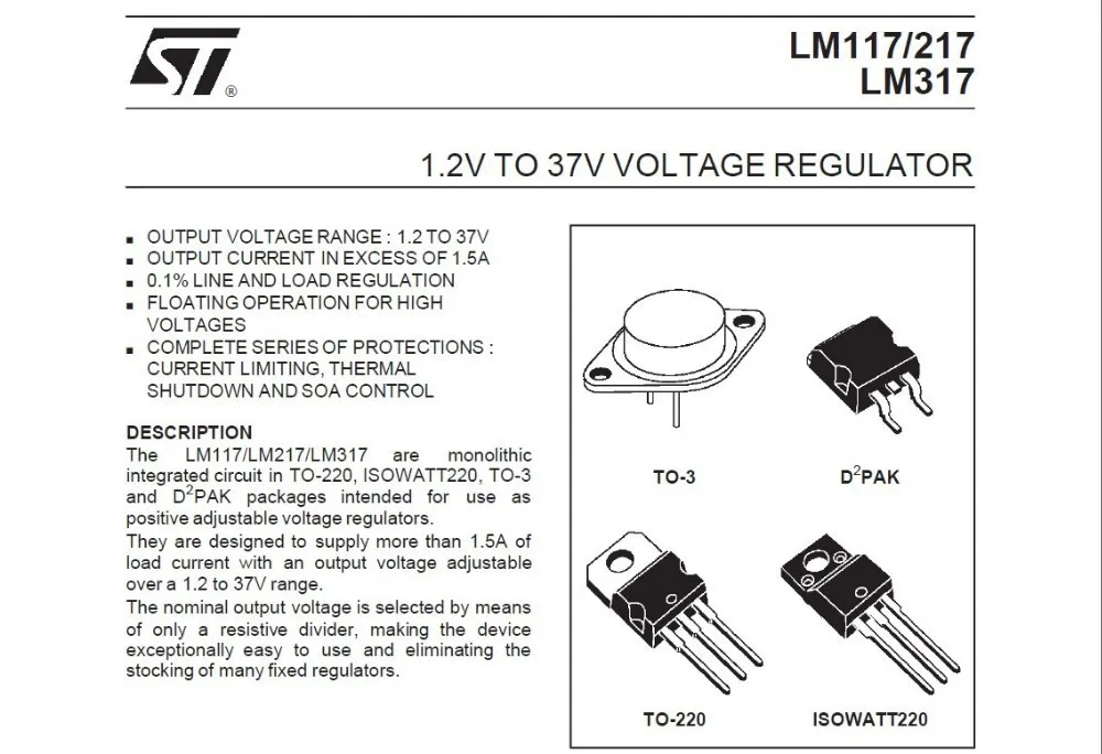 - LM317HV, LM117HV — выходное напряжение на выходе до 60V.
